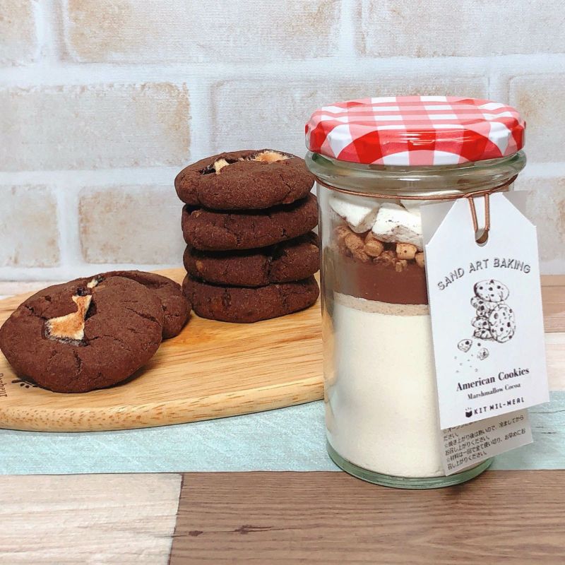 原材料名:小麦粉、ココアパウダー、メープルダイス、きび糖、マシュマロ、ベーキングパウダー、食塩、砂糖、ブドウ糖、乳化剤、酸化防止剤、香料(一部に小麦、乳成分、大豆を含む)